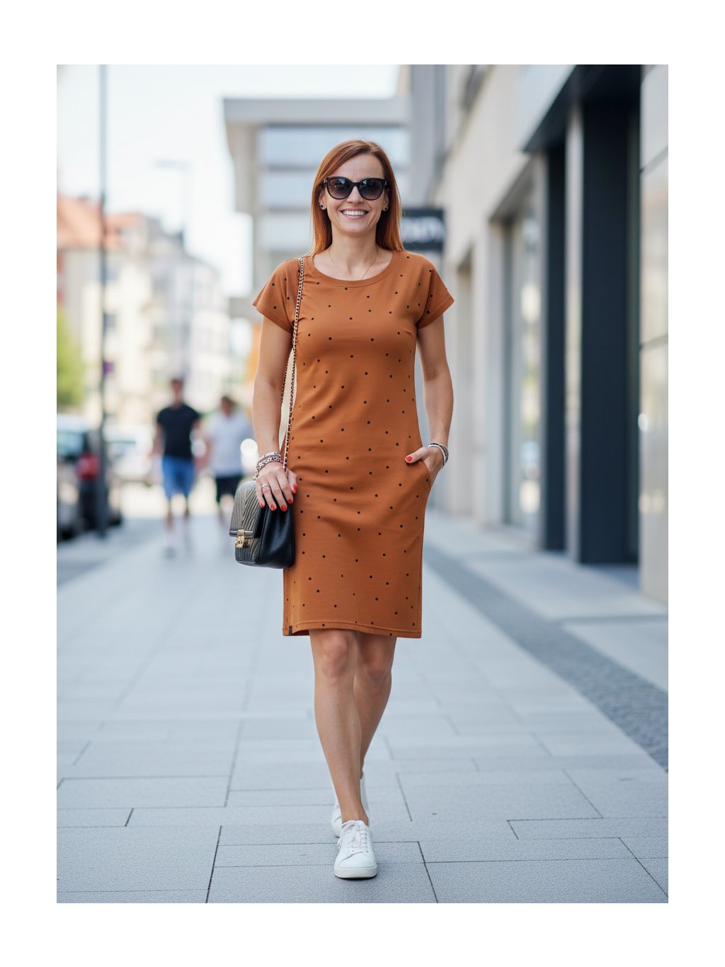 Dámské šaty SÁRA - skořicové s puntíky
