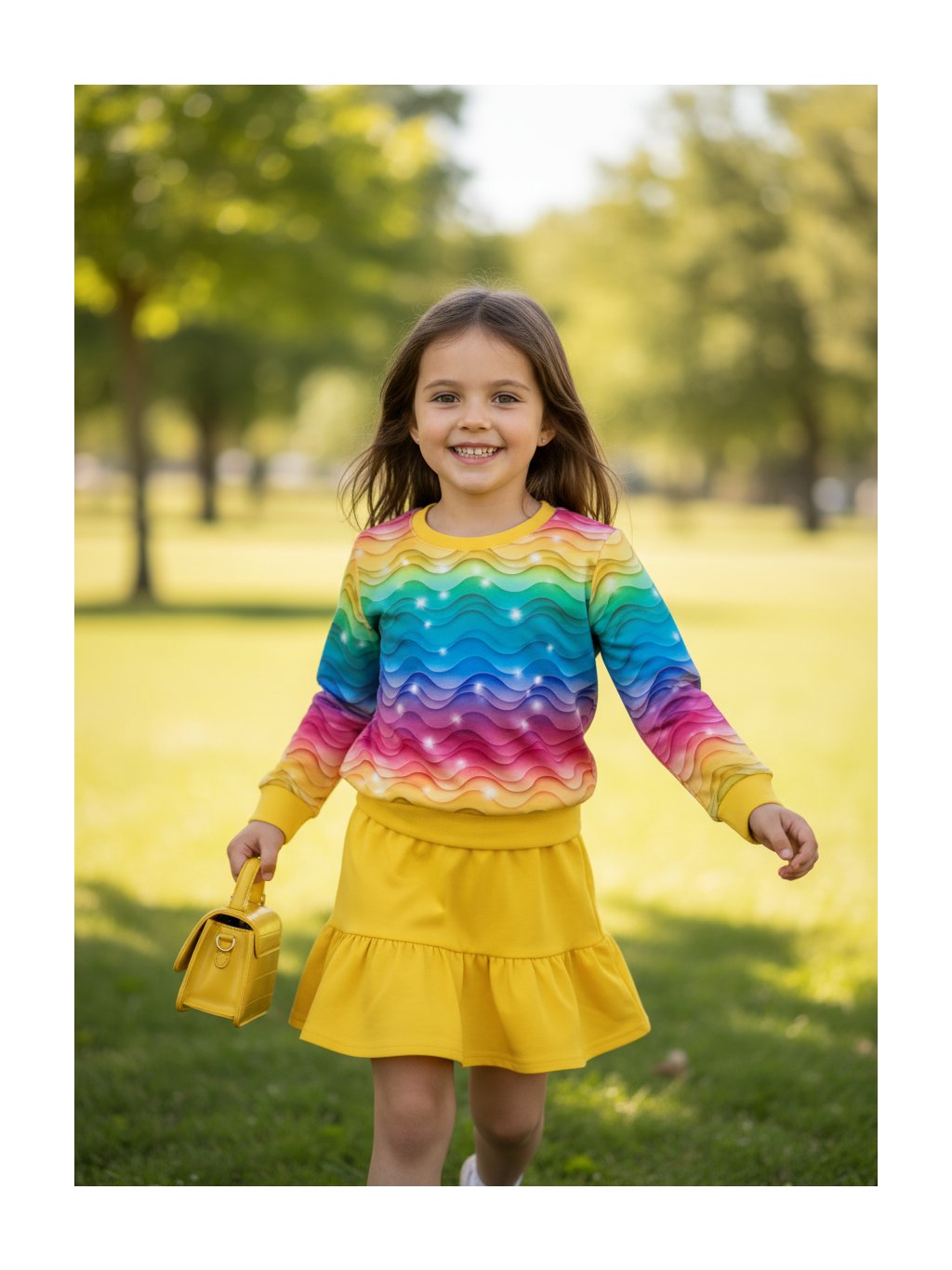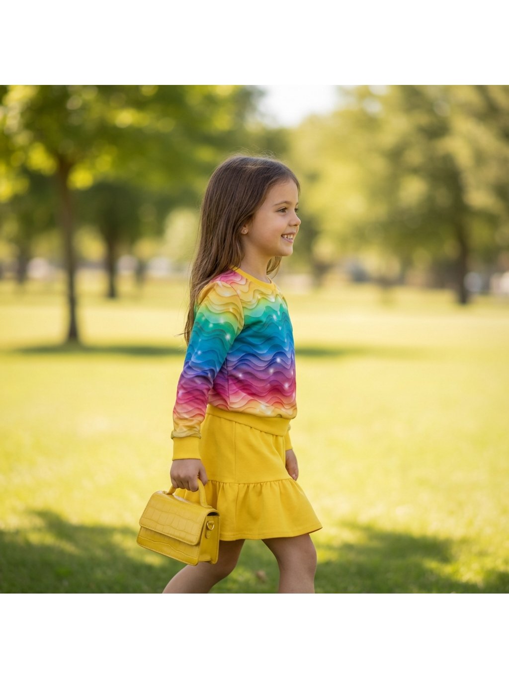 Naše stylová mikina s motivem duhy je vyrobena z kvalitní nepočesané teplákoviny. Tento materiál zajišťuje maximální pohodlí a příjemný pocit při nošení, a zároveň je odolný a dlouho vydrží. Mikina je ideální pro každodenní nošení, ať už venku, doma, nebo do školy.