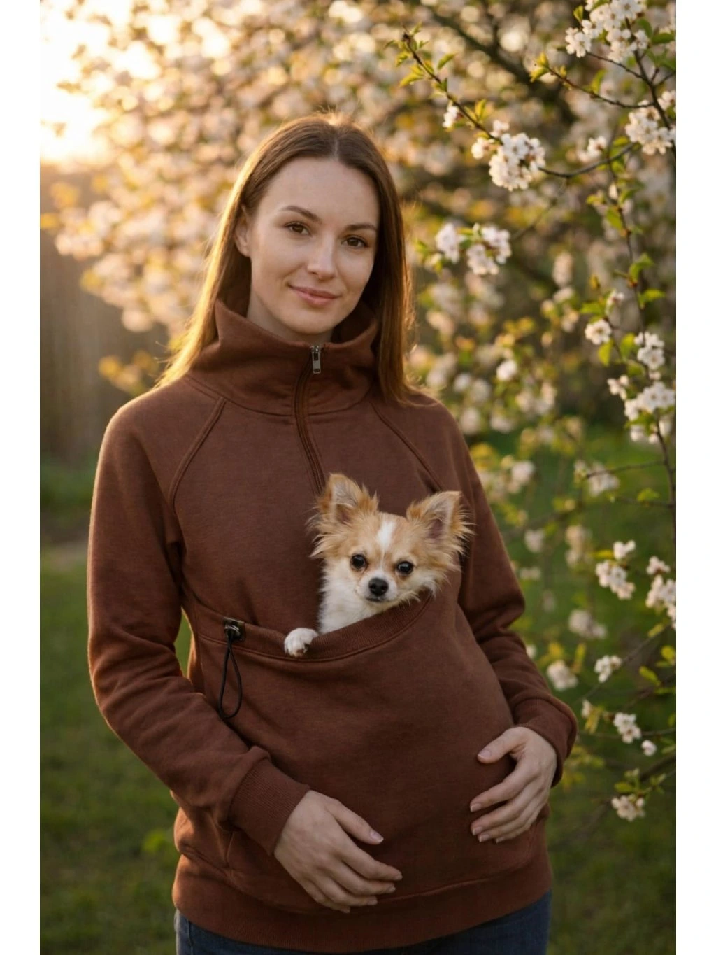 Dámská mikina Sára's Paws na nošení mazlíčků - hnědá stojáček
